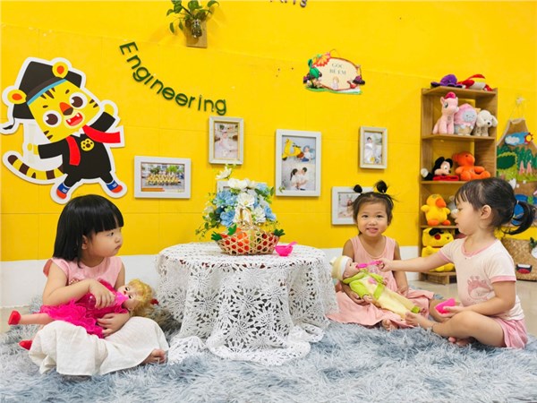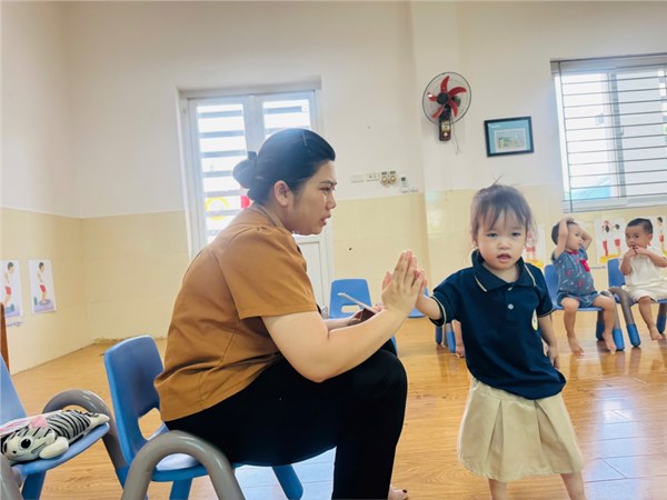 Các bé lớp D3 học tâm vận động và phát triển ngôn ngữ