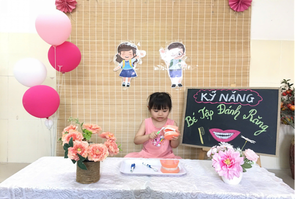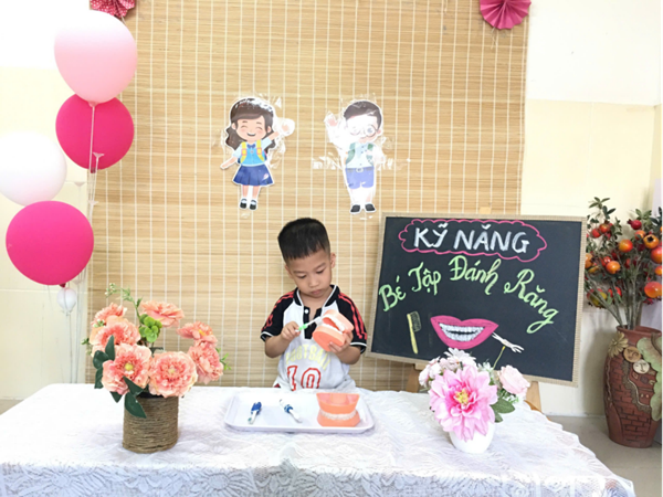 Thang 8 Album anh Lop B2 tham gia hoạt động trải nghiệm " Bé tập đánh răng"