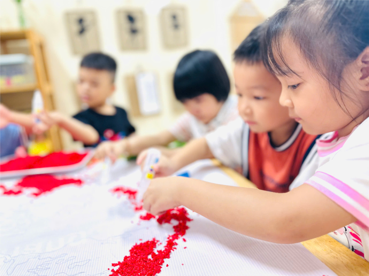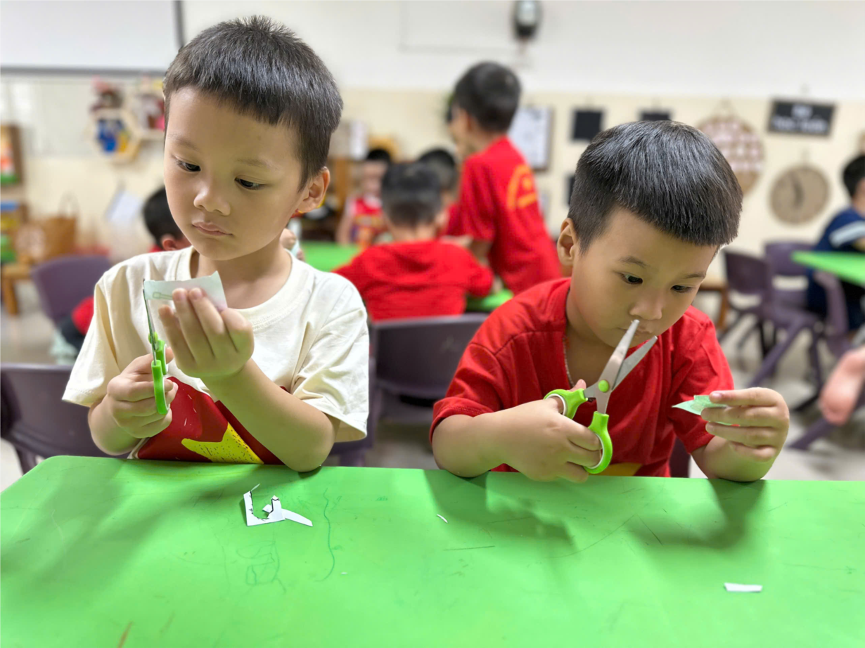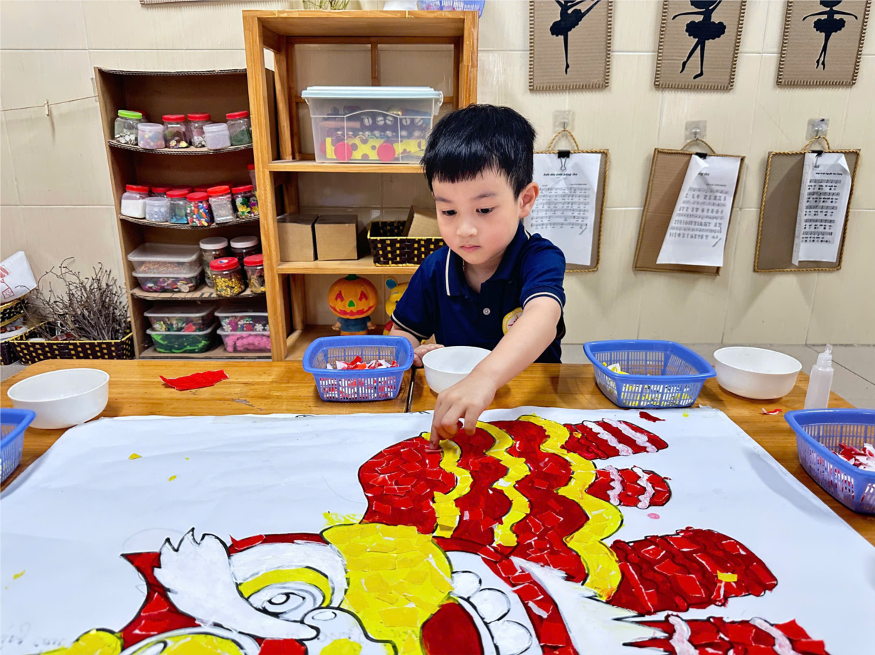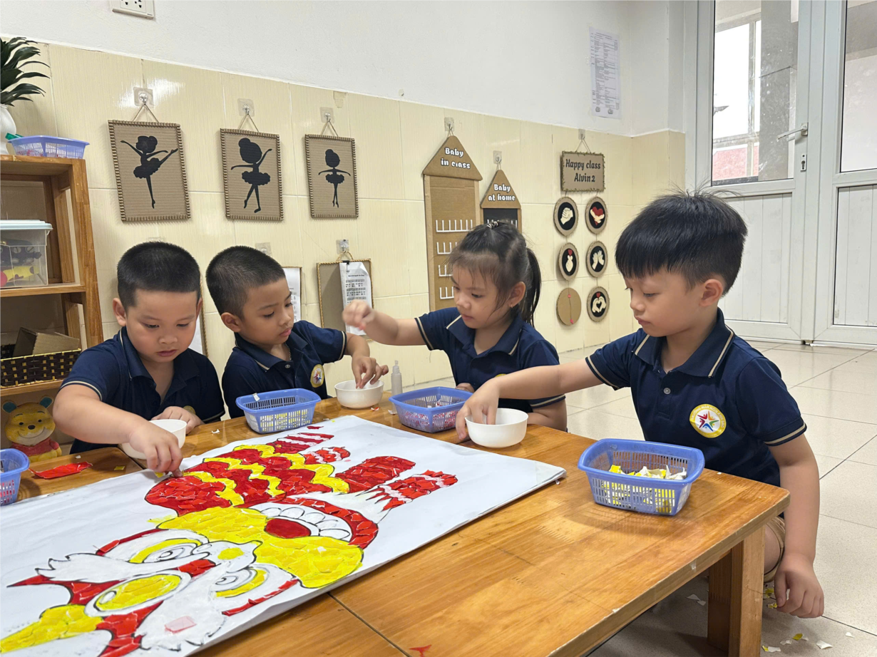 Hoạt động tô màu, xé và dán con lân của các bé lớp Alvin 2!
