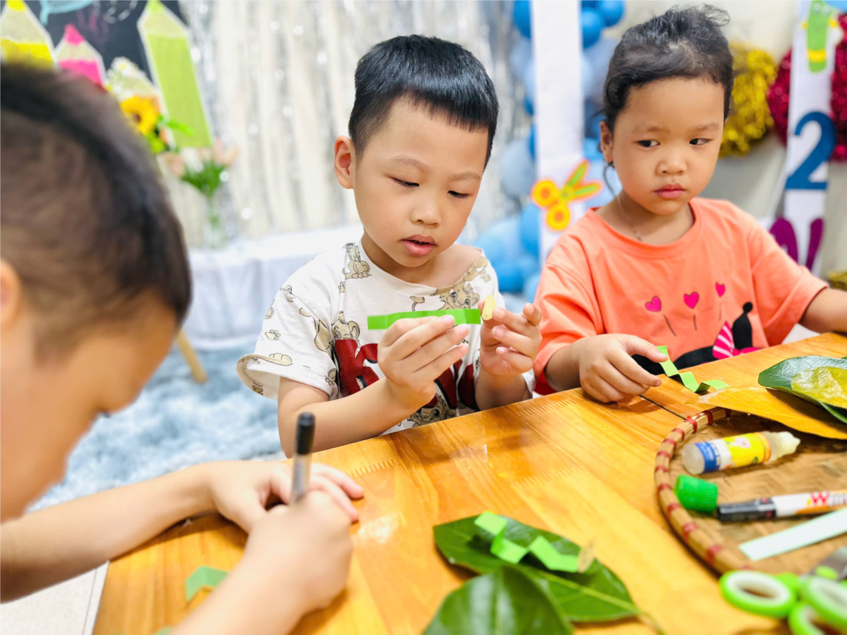 Hoạt động "Bé làm con sâu trên lá mít" của các bé lớp Alvin 2.