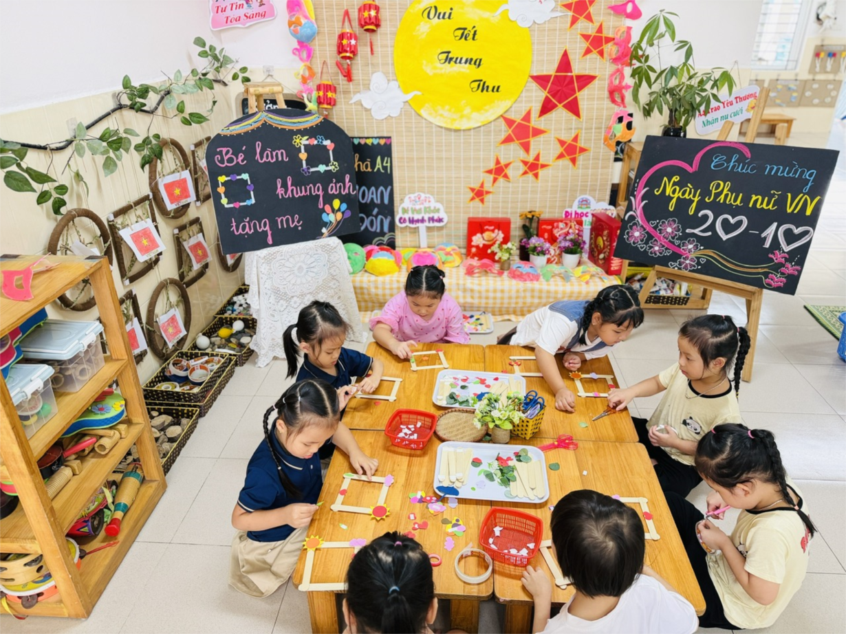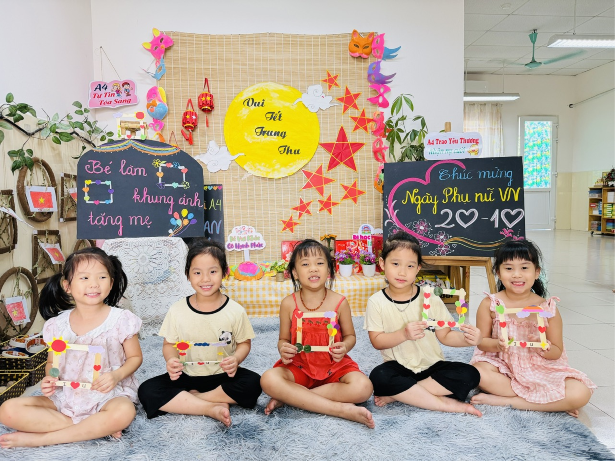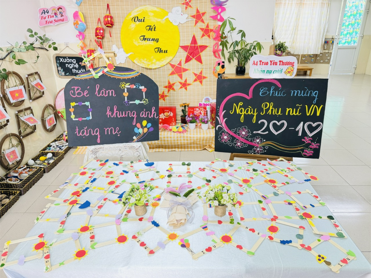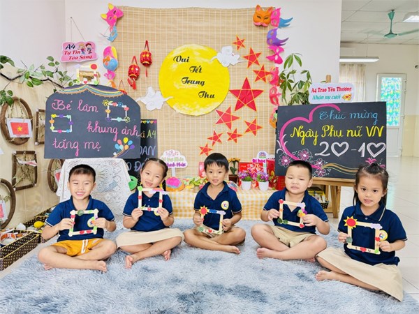 Album ảnh Tháng 10: Các bạn nhỏ lớp A4 làm khung ảnh tặng bà,mẹ nhân ngày 20/10