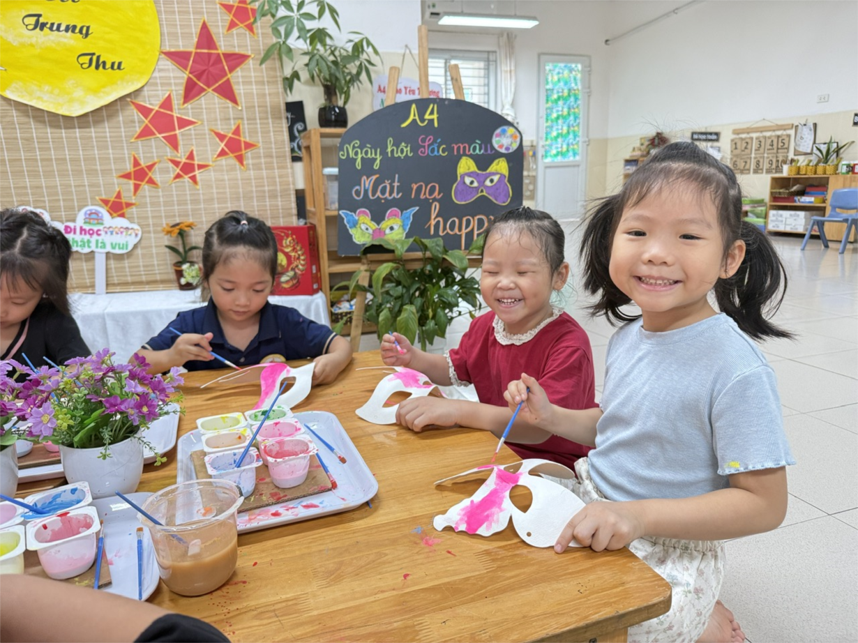 Ảnh đẹp tháng 10:Các bé MGn B4 tô mặt nạ làm đồ chơi trung thu