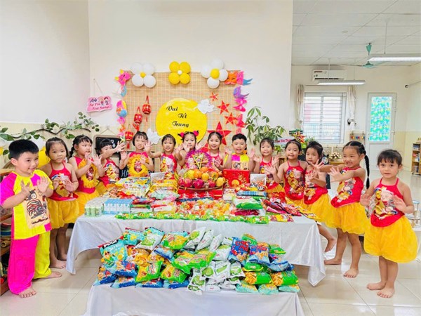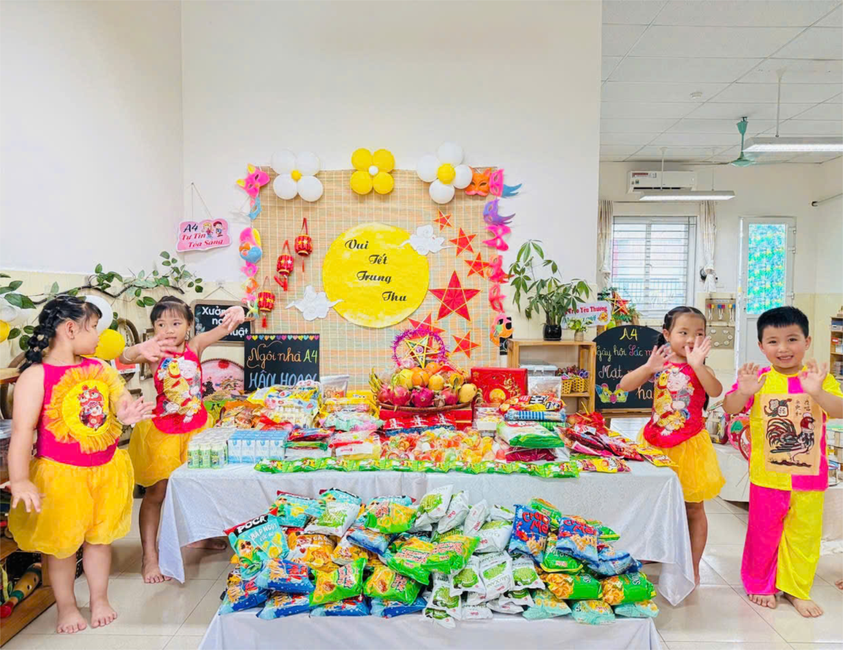 Các bạn nhỏ lớp A4 rước đèn và phá cỗ rất vui vẻ tại ngôi nhà a4 thân thương