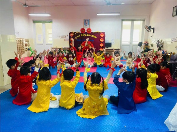 Tập ảnh : Ảnh tháng 1- Các bé lớp A2 tham gia tiết biểu diễn âm nhạc với chủ điểm tết và mùa xuân