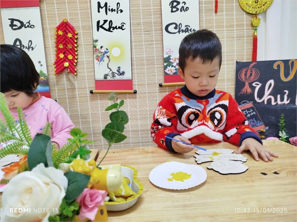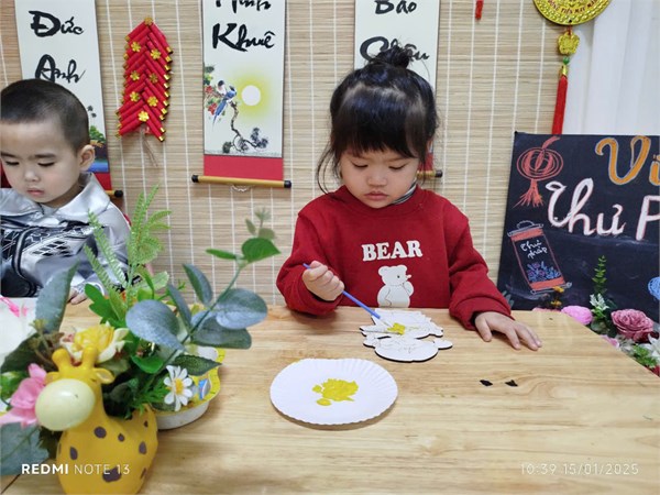 Tập ảnh : Ănh tháng 1- Các bé lớp D1 tô màu tranh gỗ.