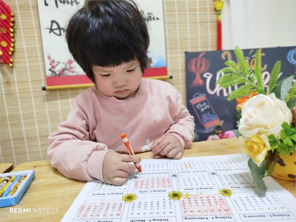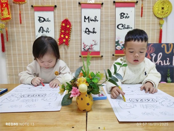 Tập ảnh : Ănh tháng 1- Các bé lớp D1 tô màu tranh tết.