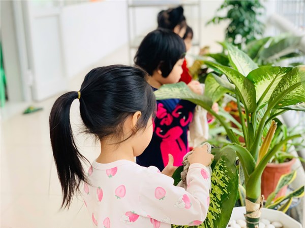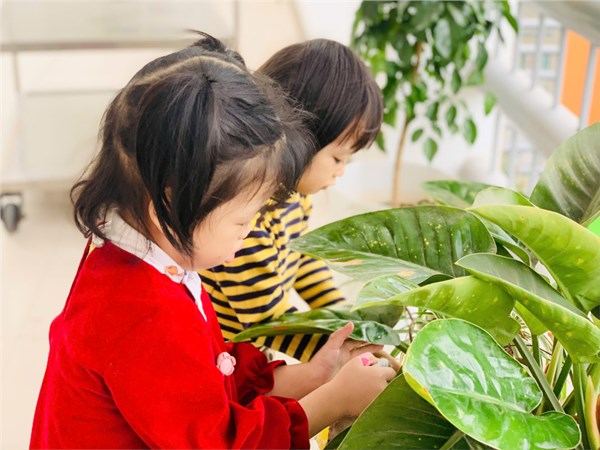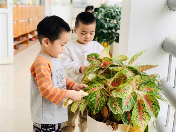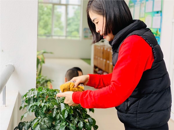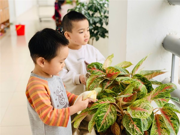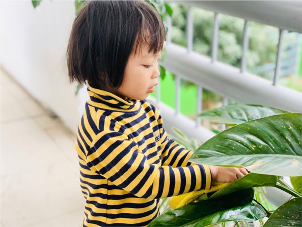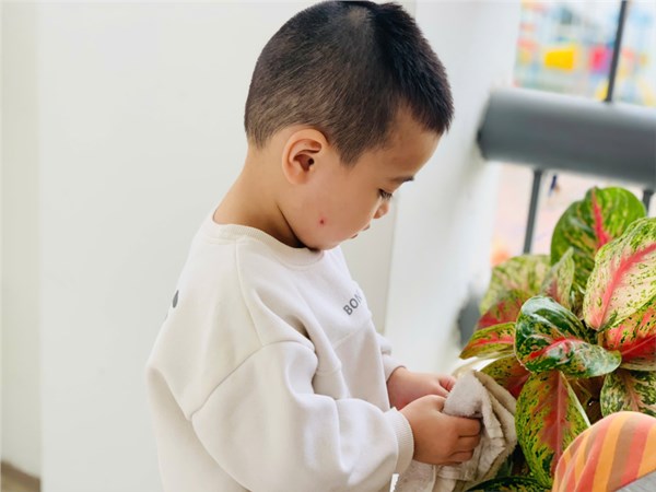 Tập ảnh : Ảnh tháng 1 lớp C3 trẻ lau lá cây chuẩn bị đón tết nguyên đán