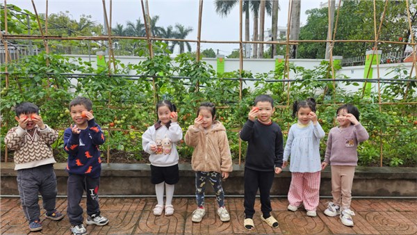 Tập ảnh : Ảnh tháng 3 - Các bạn nhỏ lớp B1 thu hoạch cà chua