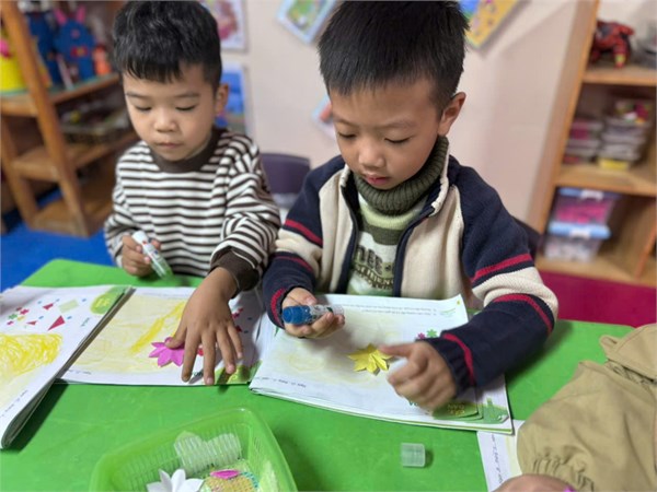 Tập ảnh : Ảnh tháng 3 - Các bé lớp MGL A4 tham gia hoạt động tạo hình dán bông hoa