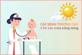 Trong mùa hè các trẻ nhỏ và trẻ sơ sinh thường mắc 6 bệnh gồm : Bệnh rôm sảy ở trẻ , bệnh tiêu chảy , bệnh chân tay miệng , bệnh sốt xuất huyết , bệnh viên màng não , và bệnh sởi . Ngoài ra còn rất nhiều trẻ bị say nắng và ngộ độc thực phẩm