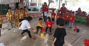 - Khi nghe tiếng hô, hai trẻ có số thứ tự giống nhau sẽ chạy nhanh về phía cờ