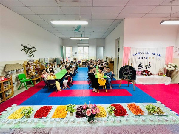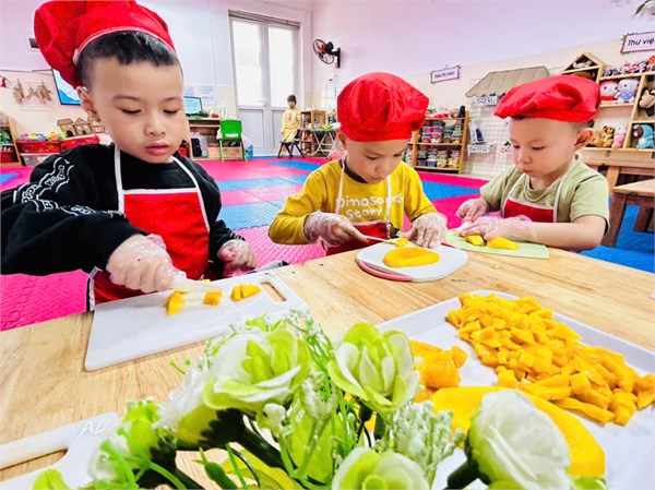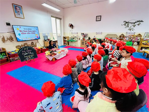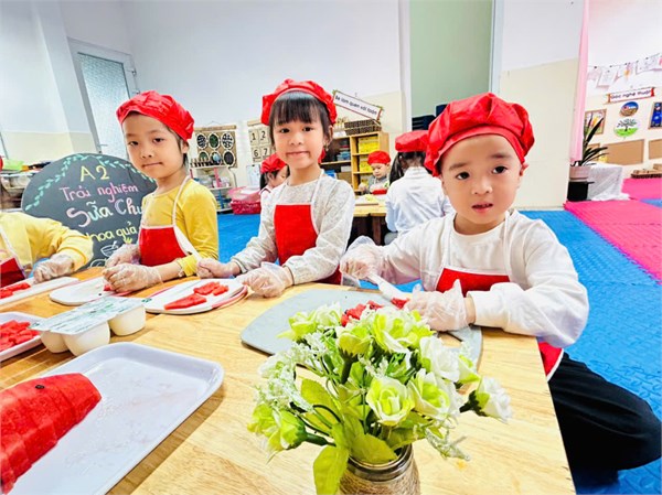 Tập ảnh : Các bạn nhỏ lớp A2 tập làm sữa chua hoa quả dầm