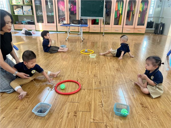Tập ảnh : Các bé lớp D1 học phát triển tâm vận động (kéo bòng trong vòng )