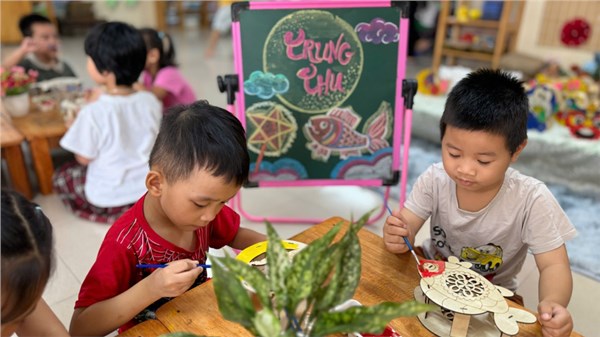 Tập ảnh : Các bé lớp MGL A4 trang trí đèn lồng gỗ