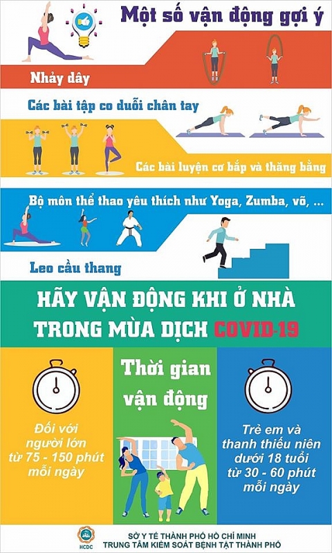 SKĐS - Đại dịch COVID-19 đang làm cho nhiều người trong chúng ta đang phải ở nhà, hạn chế ra ngoài, ít tương tác xã hội, ít tập thể dục hơn. Điều này có thể có tác động tiêu cực đến sức khỏe thể chất và tinh thần. Dưới đây là lời khuyên để giúp bạn và gia đình giữ sức khỏe trong thời gian ở nhà.