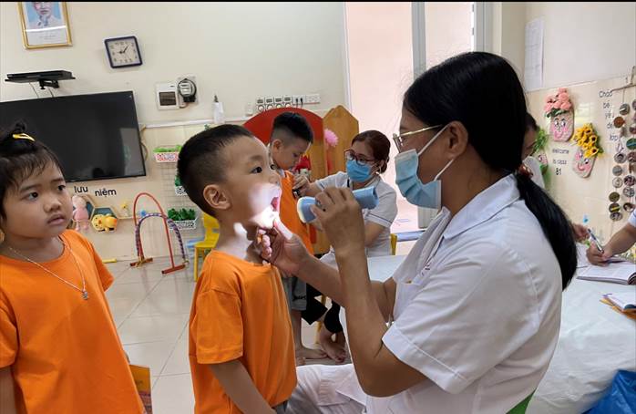 Sáng ngày 26/9/2022.trường Mầm non Ánh Sao phối hợp với Trạm Y tế phường tổ chức đợt khám sức khỏe định kỳ năm học 2022 – 2023 cho trẻ với nội dung: Cân nặng, chiều cao, khám tai, mũi, họng, mắt, kiểm tra tim và một số bệnh liên quan đến đường hô hấp, da liễu…