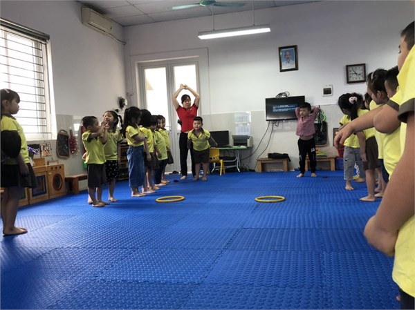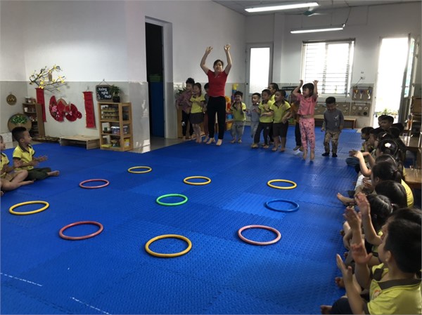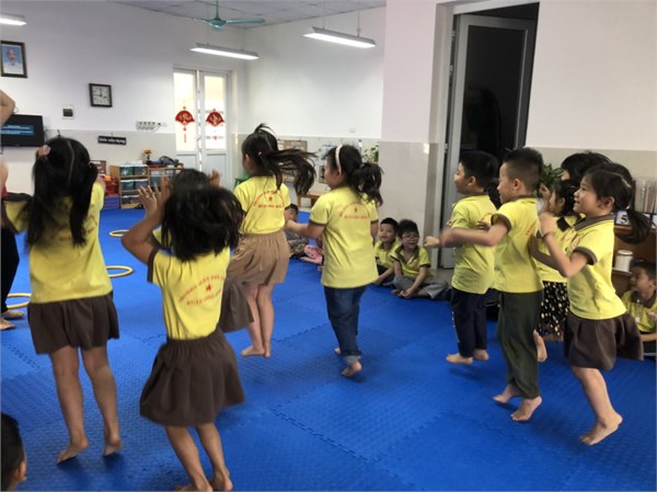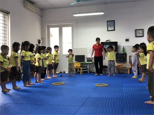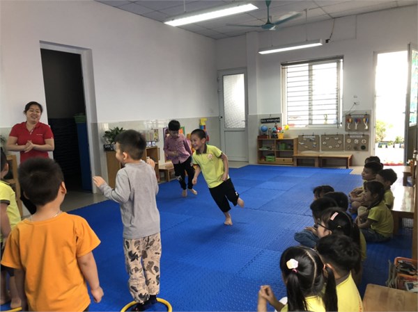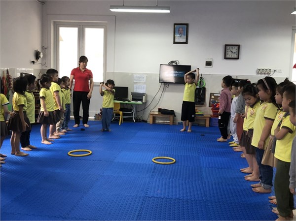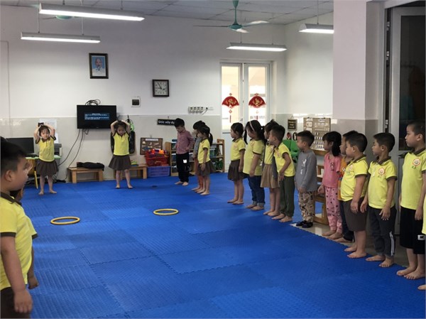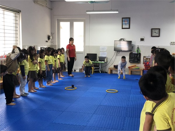 Tập ảnh : Giờ học ném trúng đích nằm ngang bằng 2 tay của các bé lớp A3