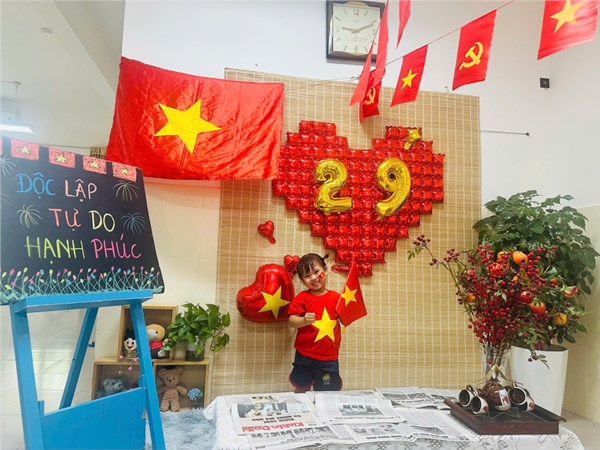 Tập ảnh : Hình ảnh các bé lớp Nhà trẻ D2 hưởng ứng chào mừng CM tháng 8 và Quốc khánh 2/9