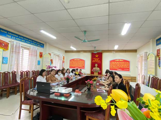 Chi bộ Trường Mầm non Ánh Sao tham gia học trực tuyến tại phòng Hội đồng trường với sự có mặt của 100% Đảng viên trong chi bộ nhà trường.