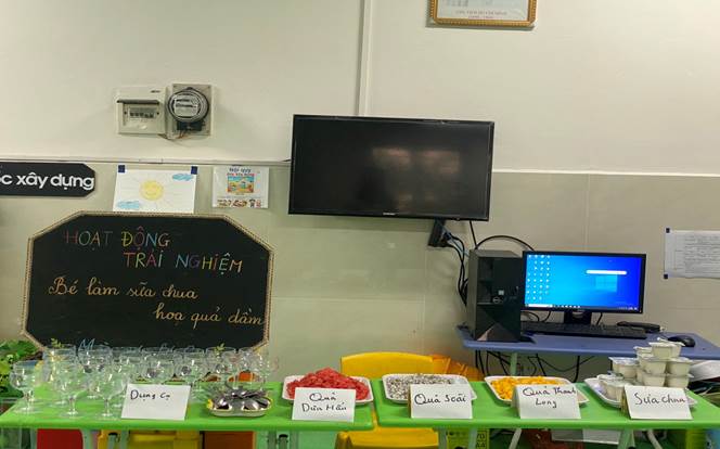 Hoạt động trải nghiệm “Bé làm sữa chua hoa quả dầm” được tổ chức tại lớp Mẫu giáo bé C4 - trường Mầm non Ánh Sao nhằm hình thành kỹ năng sống cho trẻ, giáo dục cho trẻ có hành vi văn minh trong ăn uống, rèn luyện kỹ năng tự phục vụ.