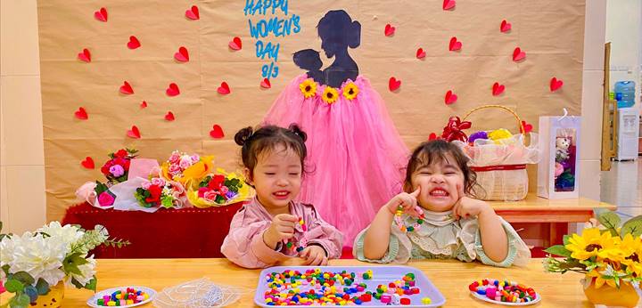 Các con đã rất hào hứng với tiết học, Bạn nhỏ nào cũng muốn hoàn thành được một chiếc vòng xinh xắn để mang về tặng mẹ của mình.