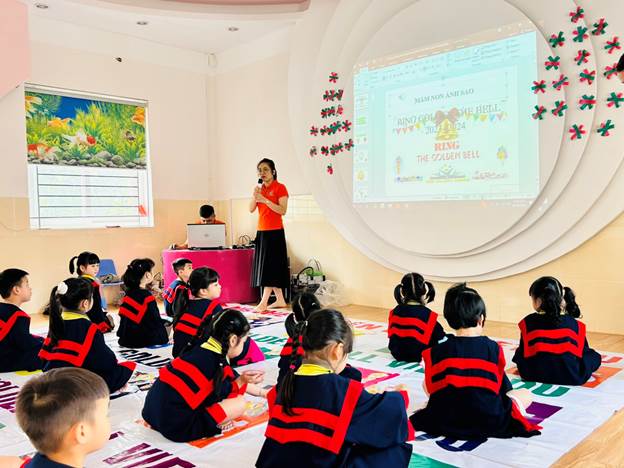 Chiều ngày 8/5/2024, Trường Mầm non Ánh Sao phối hợp với Trung tâm liên kết Tiếng Anh Việt edu, tổ chức thi Rung chuông vàng cho học sinh học tiếng Anh của khối Mẫu giáo Lớn và Mẫu giáo Nhỡ năm học 2023 - 2024. Lớp MGL A1 có 13 bé tham gia vào phần thi Rung chuông vàng! Sau các phần thi đầy hồi hộp và gay cấn hai bé Nguyễn Nhật Hà và Nguyễn Nhật Linh đã xuất sắc giành giải Nhất và giải Nhì của cuộc thi.