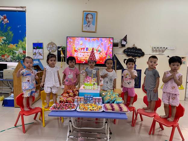 Không khí sinh nhật thật vui tươi trong sự hào hứng của những ánh mắt ngây thơ, hồn nhiên. Các con cùng nhau lưu giữ lại những khoảng khắc vui vẻ, hạnh phúc trong ngày vui này.