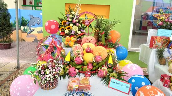 Trong chương trình nhà trường đã tổ chức trao quà cho trẻ con hộ nghèo, thi bày mâm ngũ quả giữa ban phụ huynh các lớp, xem các tiết mục văn nghệ như: Hài Kịch: Sự tích chú cuội cung trăng, rối tay “Dê con nhanh trí”, Võ thuật, Hát múa “Xem hội trăng rằm” tiết mục của cô và trẻ và xem Múa lân.
