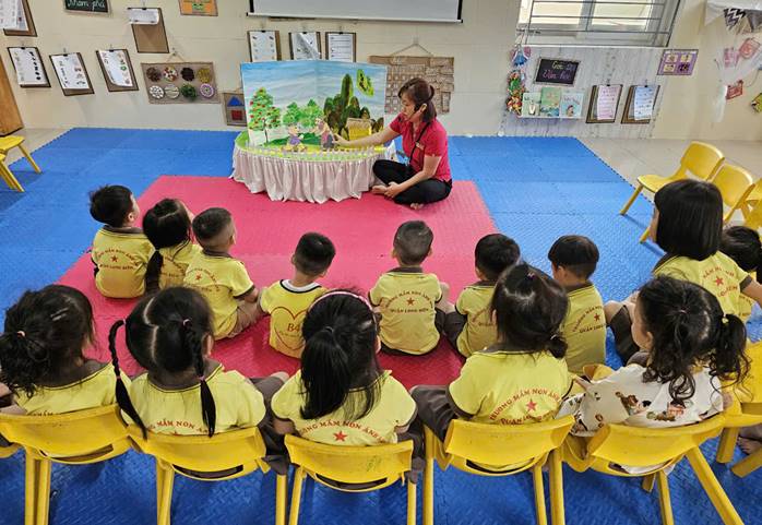 Trong không gian lớp học ấm áp của Bunny 1, câu chuyện Gấu Con Chia Quà đã mang đến một trải nghiệm mới mẻ cho các bạn nhỏ! Qua từng lời kể, hình ảnh gấu con đáng yêu hiện lên, truyền tải bài học về sự sẻ chia, tình cảm gia đình. Các bạn nhỏ còn được tham gia tương tác, đóng vai nhân vật gấu con, tự mình thực hành đếm và chia sẻ những món quà nhỏ xinh. Hoạt động này giúp các bạn vừa rèn luện kỹ năng lắng nghe, vừa hiểu thêm về ý nghĩa của sự sẻ chia.
