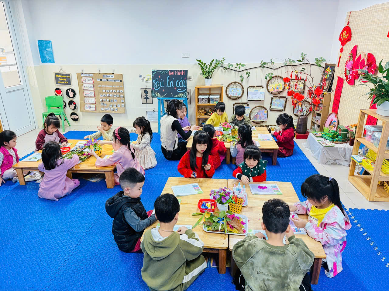 Từ những chiếc lá cây tưởng chừng phải vứt đi, các bé lớp MGL A3 đã biết sử dụng để tạo thành những bức tranh thật đẹp và đa dạng. Thông qua hoạt động này thì đã phát triển trí tưởng tượng cho trẻ, đồng thời giúp trẻ tái sử dụng những nguyên liệu thiên nhiên để tạo nên những bức tranh đa dạng về màu sắc lẫn bố cục. Mời quý PH cùng ngắm nhìn 1 số hình ảnh đẹp của các con thông qua 1 giờ hoạt động học vui và bổ ích.