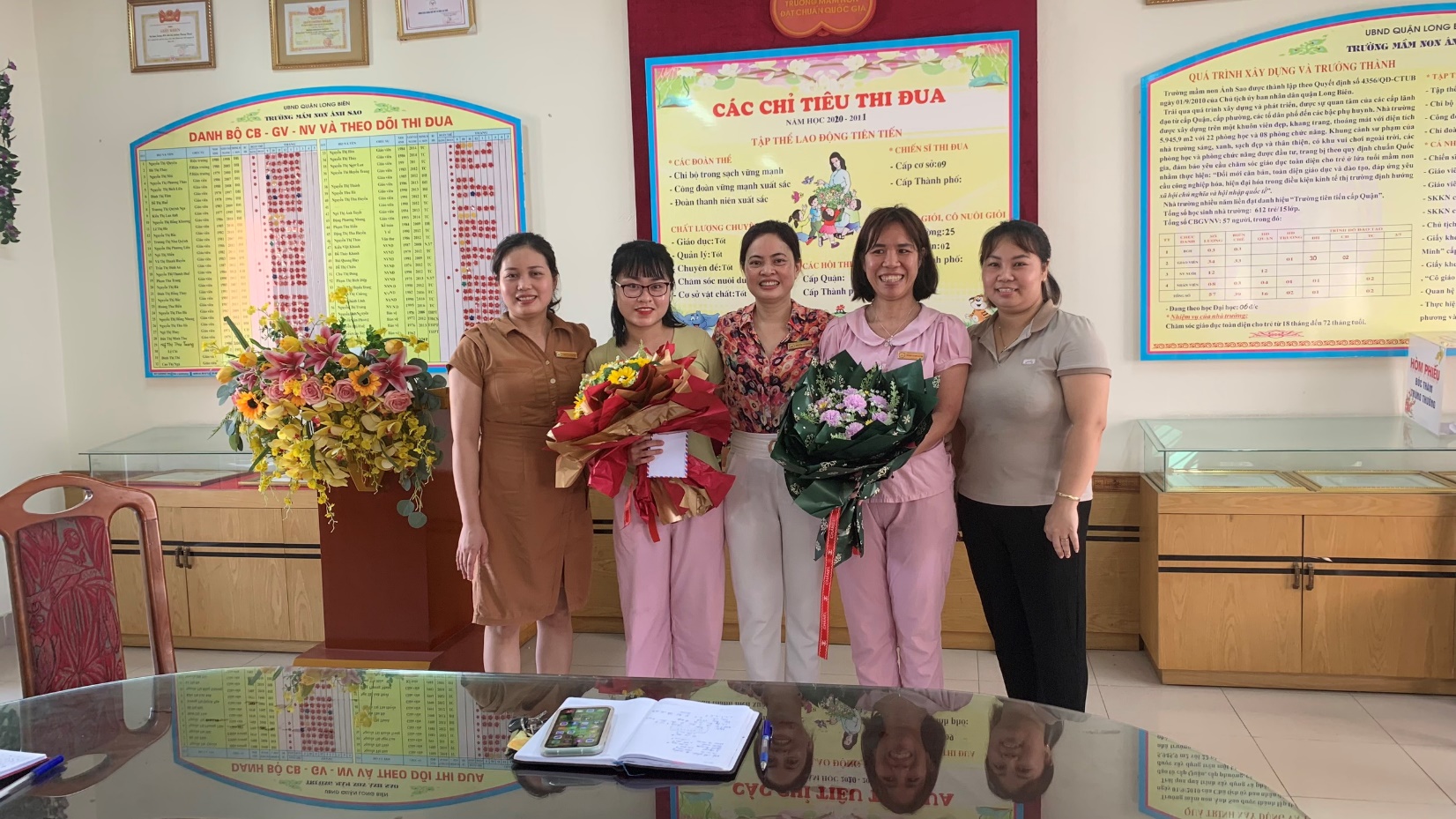 Buổi chúc mừng sinh nhật có đ/c Nguyễn Thị Quyên - Hiệu trưởng nhà trường, đ/c Trần Thị Đình An - Chủ tịch Công đoàn, đồng chí Hoàng Thu Hiền - trong BCH công đoàn lên tặng hoa và gửi lời chúc mừng sinh nhật tới 2 đồng chí đoàn viên công đoàn sinh nhật trong tháng 5 và mong muốn các đồng chí luôn có sức khỏe tốt để cùng nhau xây dựng nhà trường ngày càng phát triển.