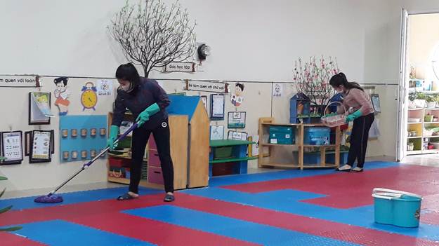 Ngày 14 tháng 2, Trường mầm non Ánh Sao đã chủ động triển khai tổng vệ sinh môi trường và khử khuẩn theo chỉ đạo của UBND Quận và cơ quan y tế, khử khuẩn vào thời gian học sinh nghỉ học. Sau khi được đồng chí Nguyễn Thị Huyền – nhân viên y tế trường phát cho Cloraminb . Khối mẫu giáo lớn trường mầm non Ánh Sao cùng các khối lớp khác tiến hành vệ sinh khử khuẩn lớp học và đồ dùng thông thoáng phòng học, lau chùi bàn ghế, các khu vực phòng học, phòng chức năng thuộc phạm vi khối mình phụ trách và vệ sinh đồ dùng, đồ chơi, … theo đúng hướng dẫn của Trung tâm Y tế tại công văn số 63/TTYT-YTCC ngày 31/01/2020 của Trung tâm y tế quận Long Biên. Sau đây là một số hình ảnh của buổi lao động tổng vệ sinh của khối:
