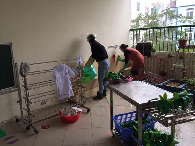 Các bố mẹ của bé hãy yên tâm nhé! Để phòng chống dịch bệnh do vi rút Corona, các cô giáo lớp MGN B1 đã vệ sinh môi trường bên trong và ngoài lớp học, đồ dùng đồ chơi bằng dung dịch Cloramin B theo đúng hướng dẫn của y tế!