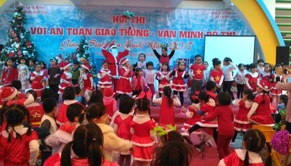 Màn kết thúc chương trình chào đón Noel rất vui khi các bé được nhảy múa cùng ông già Noel và công chúa Tuyết trên sân khấu trong điệu nhạc Jingle Bells cùng chào đón Giáng Sinh – 1 Giáng sinh an lành.