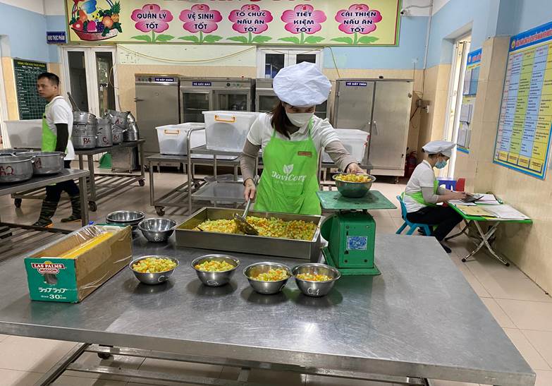 Đối với lứa tuổi mầm non công tác chăm sóc nuôi dưỡng, giáo dục trẻ là nhiệm vụ quan trọng không thể tách rời. Chính vì vậy, chế độ dinh dưỡng hợp lý, đầy đủ, cân đối sẽ góp phần quan trọng vào sự phát triển của trẻ. Việc tổ chức bữa ăn bán trú cho trẻ trong trường mầm non, cần đảm bảo các yêu cầu vệ sinh an toàn thực phẩm, phải thực hiện tốt theo quy trình bếp ăn một chiều. Các đồng chí nhân viên nuôi dưỡng phải tuân thủ nghiêm túc công tác vệ sinh, thực hiện dây chuyền theo bảng phân công và hàng ngày giao nhận thực phẩm có đầy đủ các thành phần trong nhà trường. Dưới sự cần cần mẫn, chịu khó học hỏi cách chế biến món ăn của các cô nuôi ở trường đã tạo ra các món ăn ngon, hương vị hấp dẫn giúp trẻ ăn hết xuất, ngon miệng để mỗi ngày đến trường với trẻ là một ngày vui, ngày hạnh phúc.