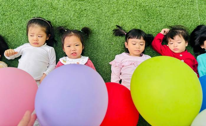 Trên thảm cỏ xanh mát của Mầm non Ánh Sao, các em út lớp D3 đã có một buổi chơi “Đạp Bóng” vô cùng thích thú. Những quả bóng bay đủ màu sắc được treo lơ lửng, các con đưa đôi chân nhỏ xinh lên cao và đạp bóng thật khéo léo. Mỗi cú chạm bóng khiến bóng nảy lên lại khiến tiếng cười giòn tan vang khắp sân trường 💛💜💙