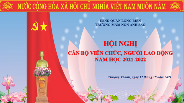 Thực hiện Hướng dẫn số 10/HD-LĐLĐ ngày 13/9/2021 của Liên đoàn Lao động quận Long Biên về hướng dẫn Quy trình tổ chức Hội nghị viên chức và Hội nghị người lao động khối trường học, năm học 2021 - 2022. Hôm nay, được sự đồng ý của Liên đoàn Lao động quận và Chi bộ nhà trường, Trường mầm non Ánh Sao tổ chức hội nghị cán bộ, công chức, viên chức năm học 2021 - 2022.