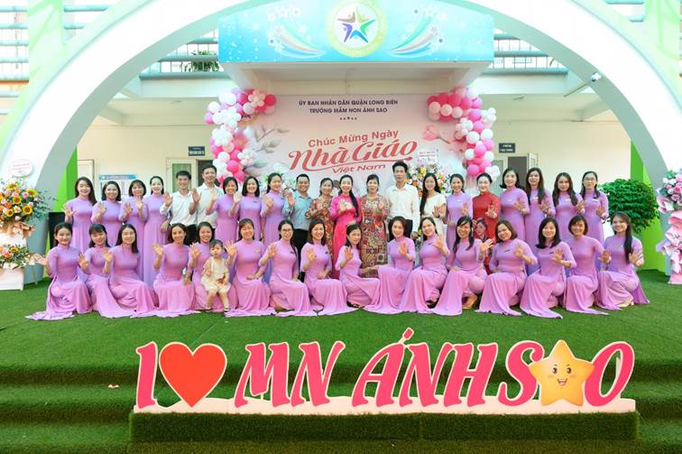 Sáng ngày 20/11, trường Mầm non Ánh Sao tràn ngập sắc hoa, diễn ra buổi lễ mít tinh kỷ niệm ngày Nhà giáo Việt Nam. Mở đầu buổi lễ là các tiết mục văn nghệ dễ thương đến từ các lớp MGL với các bài múa hát “Cô giáo em là hoa Eban”; “Lời thầy cô”, hát múa “Trường MN Ánh Sao nơi ươm mầm hạnh phúc”, đã được các bé và các cô giáo thể hiện để tri ân các thầy cô giáo nhân ngày 20/11 thật xuất sắc.