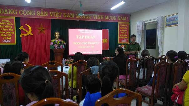 Tham gia lớp tập huấn gồm tập thể cán bộ, giáo viên, nhân viên trong nhà trường. Giảng viên hướng dẫn là đ/c Nguyễn Văn Mạnh- Công an PCCC quận Long Biên.