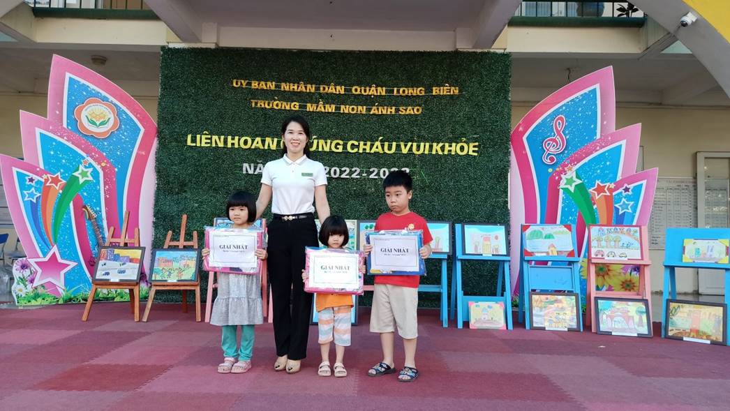 Tham dự hội thi “Bé vẽ tranh” năm học 2022-2023/ Lớp MGB C3 có 3 bạn tham gia đó là Tú Uyên, Thanh Nhi, Khánh An. Với chủ đề “Quê hương đất nước”