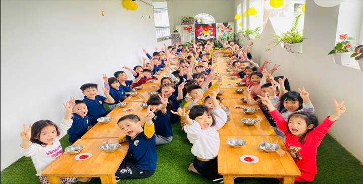 xuân. Trong không khí tươi mới ấy, các bé mầm non Ánh Sao háo hức tham gia vào bữa tiệc buffet đầy màu