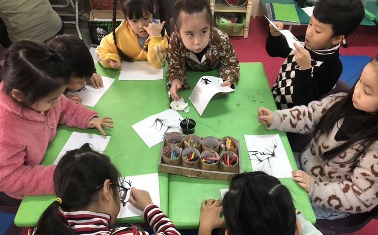 Trẻ sẽ nhỏ màu nâu ra giấy bìa trắng A4 sau đó, các bạn nhỏ một lượng màu vừa đủ lên giấy và thổi ra nhiều hướng khác nhau tạo thành thân cây xù xì với những chiếc cành đan chi chít khẳng khiu. Điều thú vị khi vẽ tranh bằng màu thổi là sản phẩm cành cây bé tạo ra vô cùng độc đáo và khác biệt.