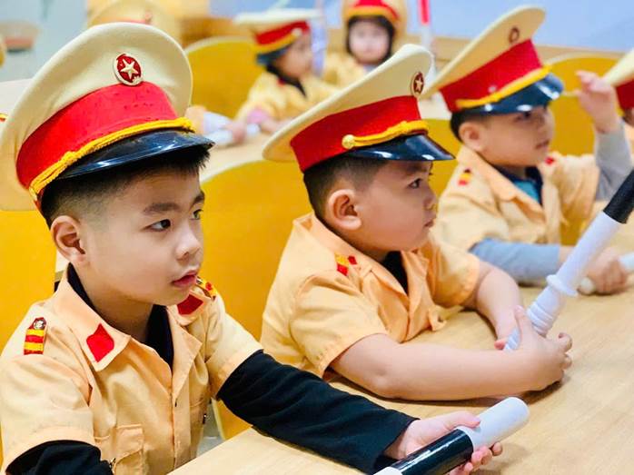 Hôm nay, các bé lớp MGN B4 được hoá thân thành những cô chú cảnh sát giao thông thật vui và thật thích. Trong những bộ trang phục xinh xắn, bạn nhỏ nào cũng cười rạng rỡ, ánh mắt long lanh đầy háo hức.