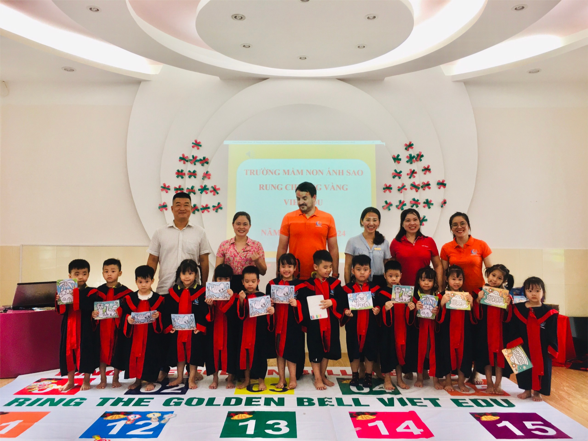 Chiều ngày 8/5/2024, Trường Mầm non Ánh Sao kết hợp với Trung tâm liên kết tổ chức thi "Rung chuông vàng" cho học sinh học Tiếng Anh khối mẫu giáo nhỡ và khối mẫu giáo lớn năm học 2023 - 2024. 14 bé lớp MGN B4 cùng tham gia thi với các bạn khối MGN, bạn nào cũng hào hứng, sôi nổi và thích thú chú ý lắng nghe và lựa chọn đáp án mình cho là đúng nhất giơ lên. Sau đây là một số hình ảnh các bạn lớp MGN B4 tham gia thi " Rung chuông vàng"