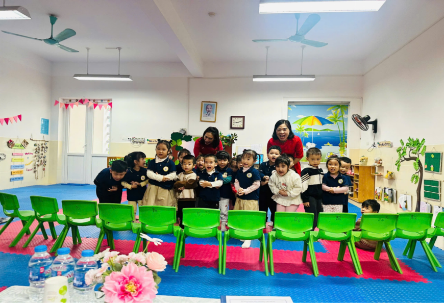 Cô và trẻ chơi trò chơi Con thỏ tai dài