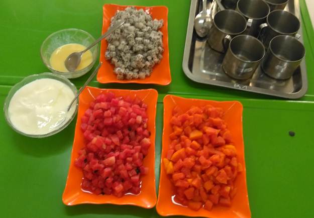 Hôm nay các bé lớp MGN B1 được cô giáo dạy làm hoa quả dầm đấy! Các bé rất hào hứng chăm chú nghe cô giáo Phương Thảo hướng dẫn các làm hoa quả dầm. Nguyên liệu các cô đã chuẩn bị gồm có: Sữa chua, sữa ông thọ, dưa hấu, thanh long, đu đủ đều được thái nhỏ...Sau khi nghe cô hướng dẫn các làm các bé được về bàn và tự tay mình làm cốc hoa quả dầm cho mình. Bạn nào bạn đấy rất thích thú khi được tự mình làm cốc hoa quả dầm cho mình.Đây là một trải nghiệm thú vị và bổ ích đối với trẻ trong giờ hoạt động chiều của lớp MGN B1. Xin cảm ơn cô giáo Phương Thảo và cô giáo Phạm Trang đã đem đến cho các bé lớp mẫu giáo B1 một trải nghiệm đầy bổ ích này.