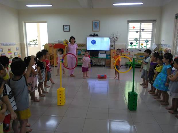 Hôm nay, các bé lớp mẫu giáo nhỡ B3, 4 thực hiện vận động "ném trúng đích ngang xa" và tham gia trò chơi "Ếch nhảy qua suối". Sự hứng thú khi tham gia vận động đã thể hiện trên khuôn mặt của các bé. Sau đây là một số hình ảnh của giờ thể dục giờ học của các bé.