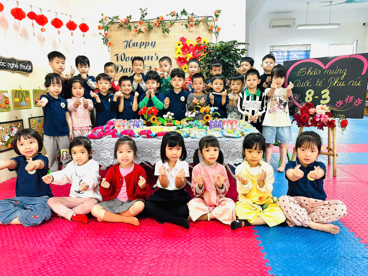 Hôm nay, các bạn nhỏ lớp Mẫu giáo nhỡ B3 đã tự tay làm những bông hoa rực rỡ để cô và các bạn gái trong lớp