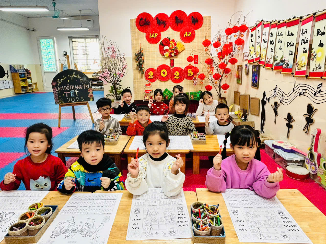 Tết Nguyên Đán đã ngập tràn tại lớp mẫu giáo lớn của chúng ta! Hôm nay, các bé