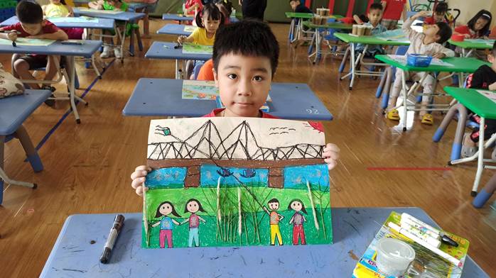 Bé !important; Đỗ Vũ Quang Minh với bức tranh đạt giải Nhất của mình